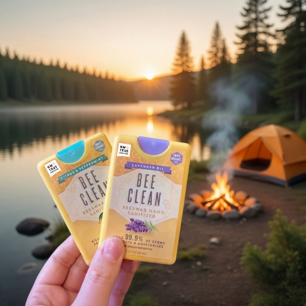 Bee Clean Beeswax Hand Sanitizer kills 99.9% of germs with 100% organic, natural ingredients. Its mess-free spray uses antimicrobial peptides and organic ethyl alcohol, while beeswax, vitamin E, avocado oil, and apricot oil keep hands soft with no sticky residue. Light citrus, peppermint, and lavender scents. Made in the USA.